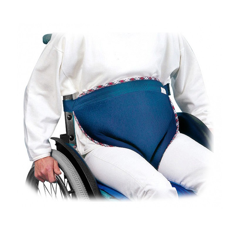 Cette ceinture s'attache derrière le dossier du fauteuil afin de limiter le glissement en avant. Grande largeur pour le confort du patient.
