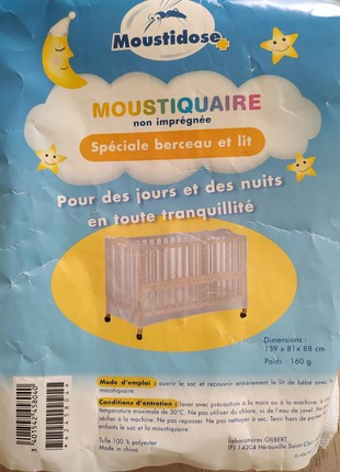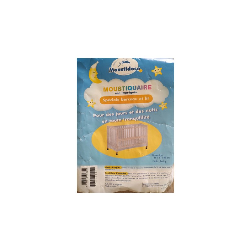 Moustiquaire non imprégnée spéciale berceau et lit, pour des jours et des nuits en toute tranquilité.