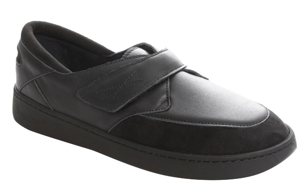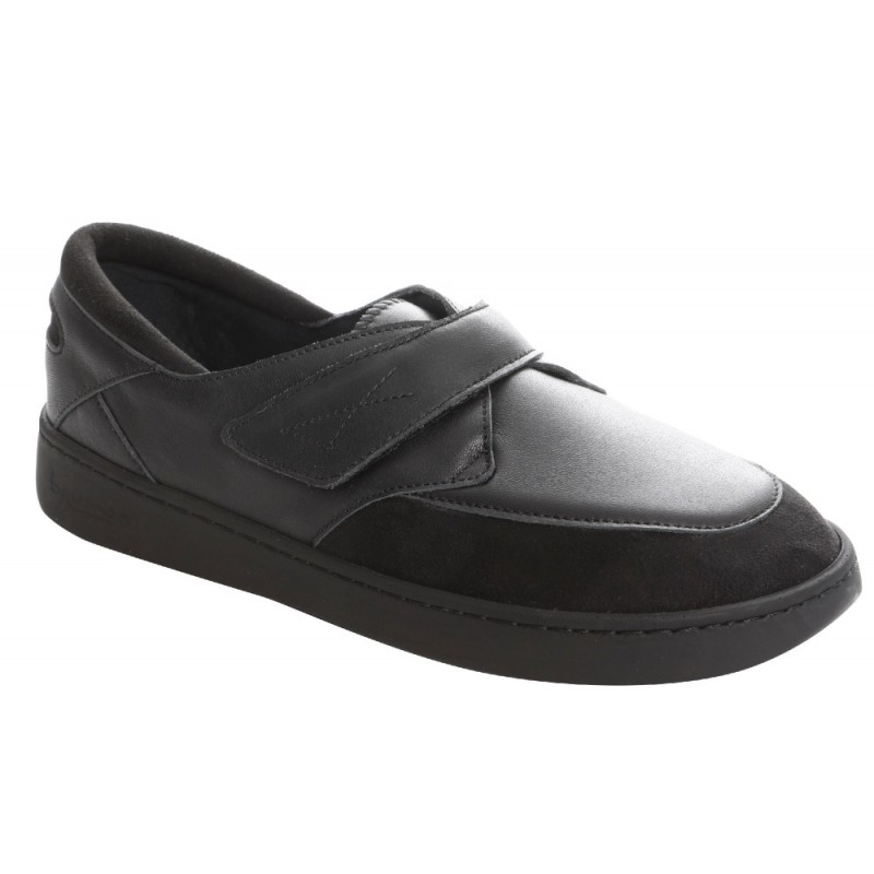 Chaussure mixte à grande ouverture, extensible sur les cotés, avec réglage par bande auto-agrippante sur le coup de pied.