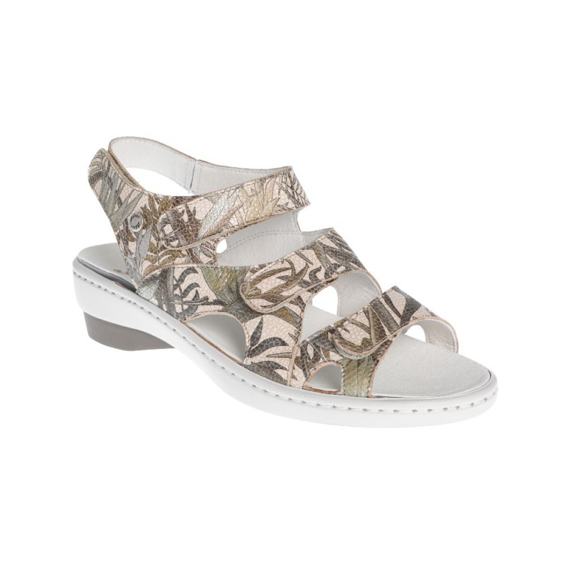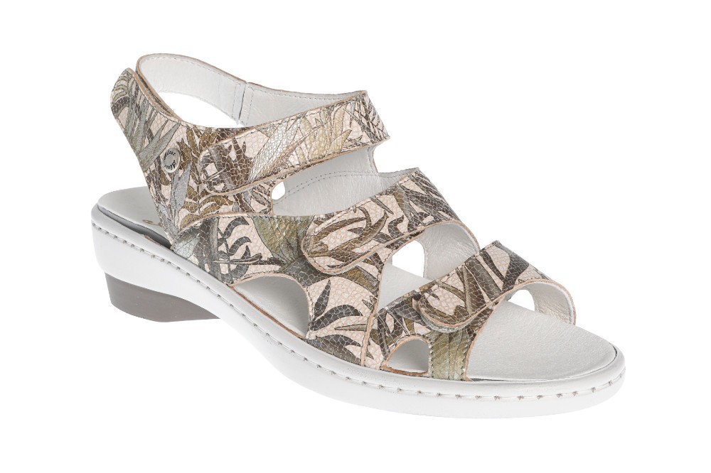 Sandale femme à ouverture totale, avec quadruple réglages sur le coup et l'avant pied, la cheville et l'arriére du talon, équipé d'une semelle amovible. Idéal en cas d'Hémiplégie et de Polyarthrite