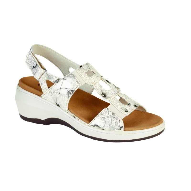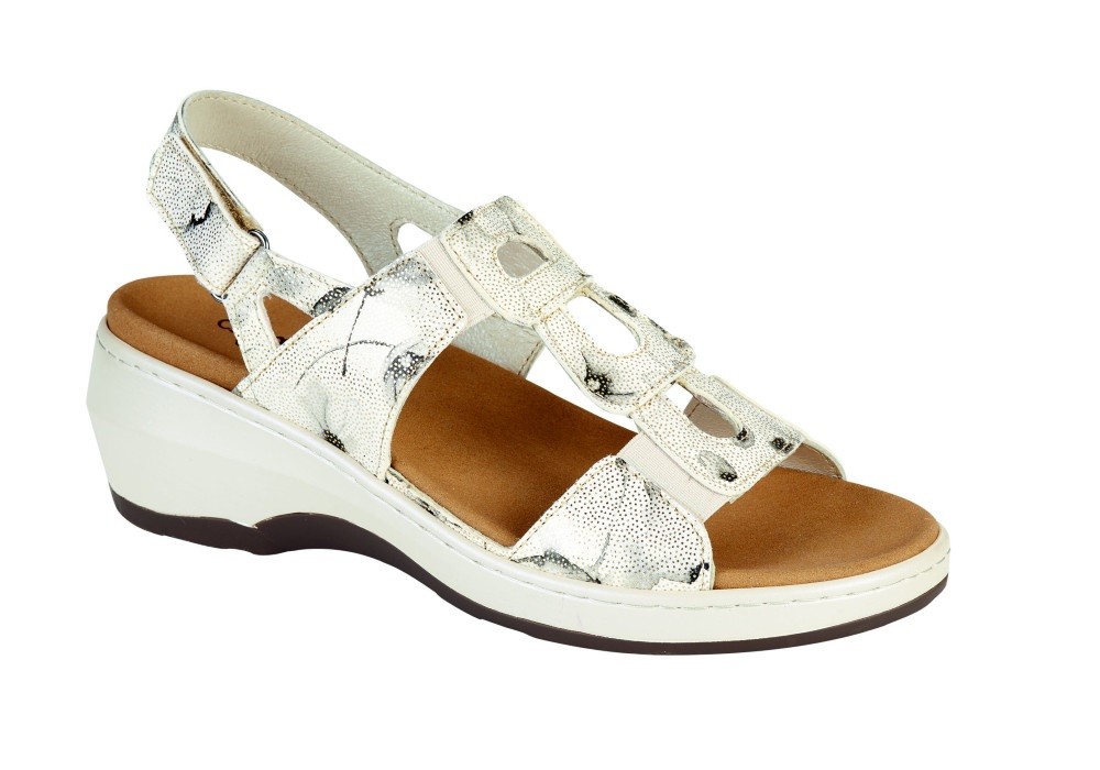 Sandale femme extensible à l'avant, avec réglage arrière par bande auto-agrippante, est équipé d'une semelle amovible adaptée. Idéal notamment en cas de pathologies d'Hallux Valgus et Polyarthrite.