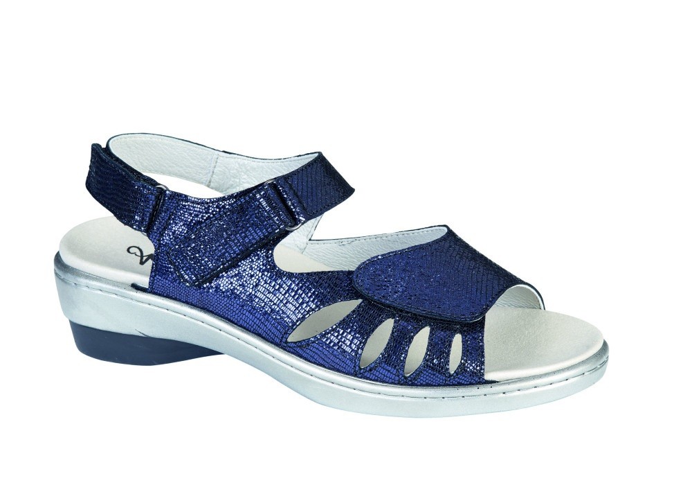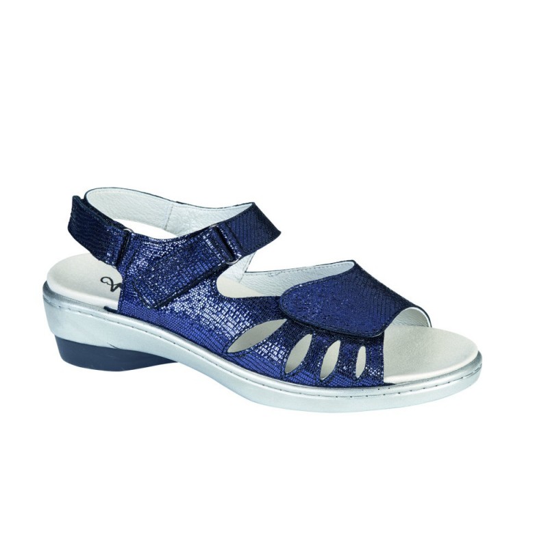 Sandale femme à ouverture totale, avec triple réglage sur le coup de pied, l'avant pied et l'arrière du talon, est équipé d'une semelle amovible adaptée
