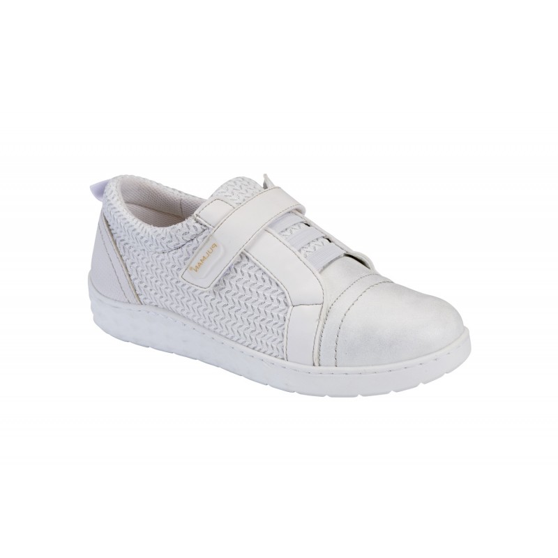 Chaussure femme à grande ouverture, extensible sur l'avant, réglage par élastique et bande auto-agrippante, semelle amovible. Idéal en cas de diabète, d'Hallux Valgus, Hémiplégie et de Polyarthrite.